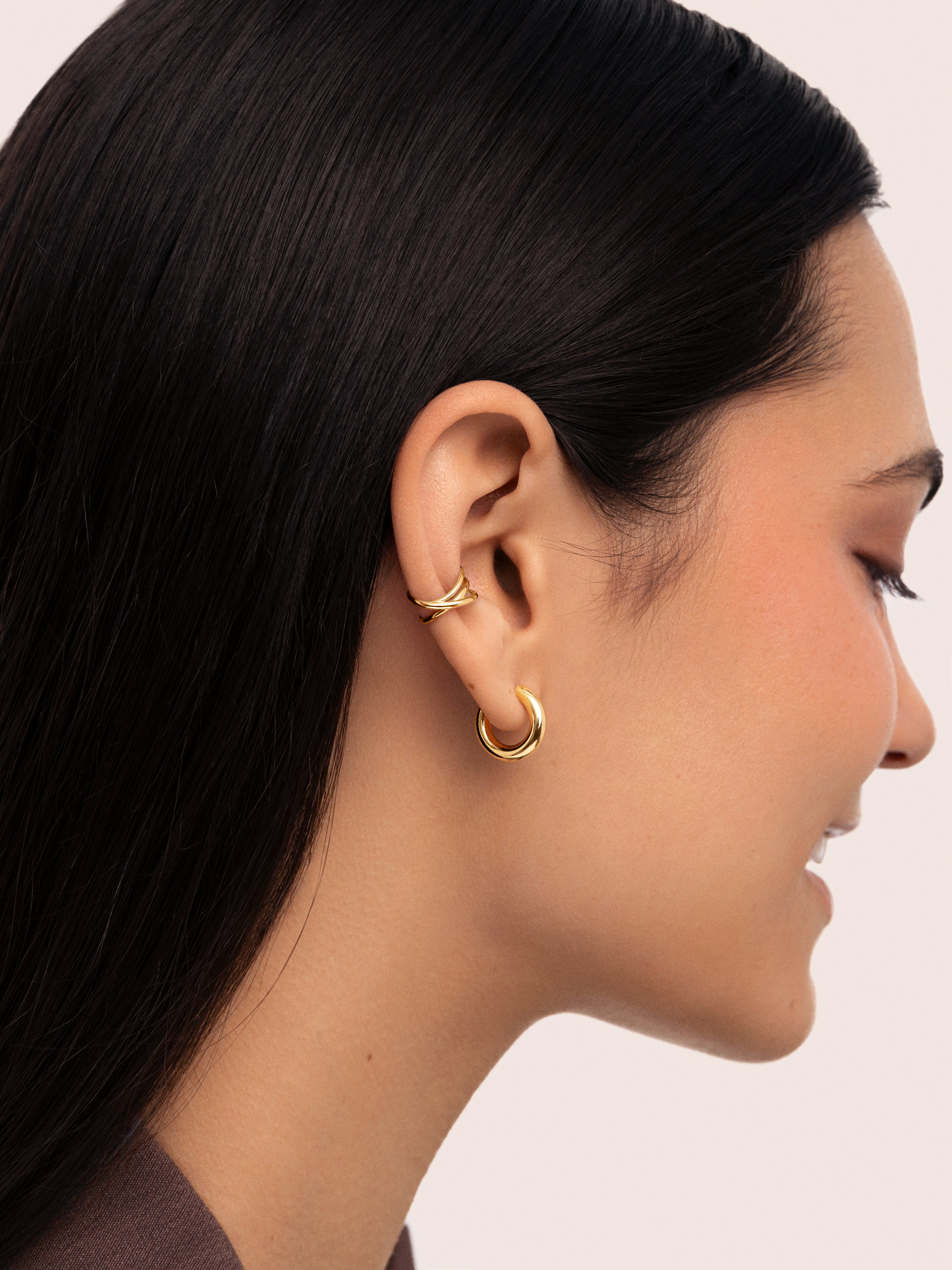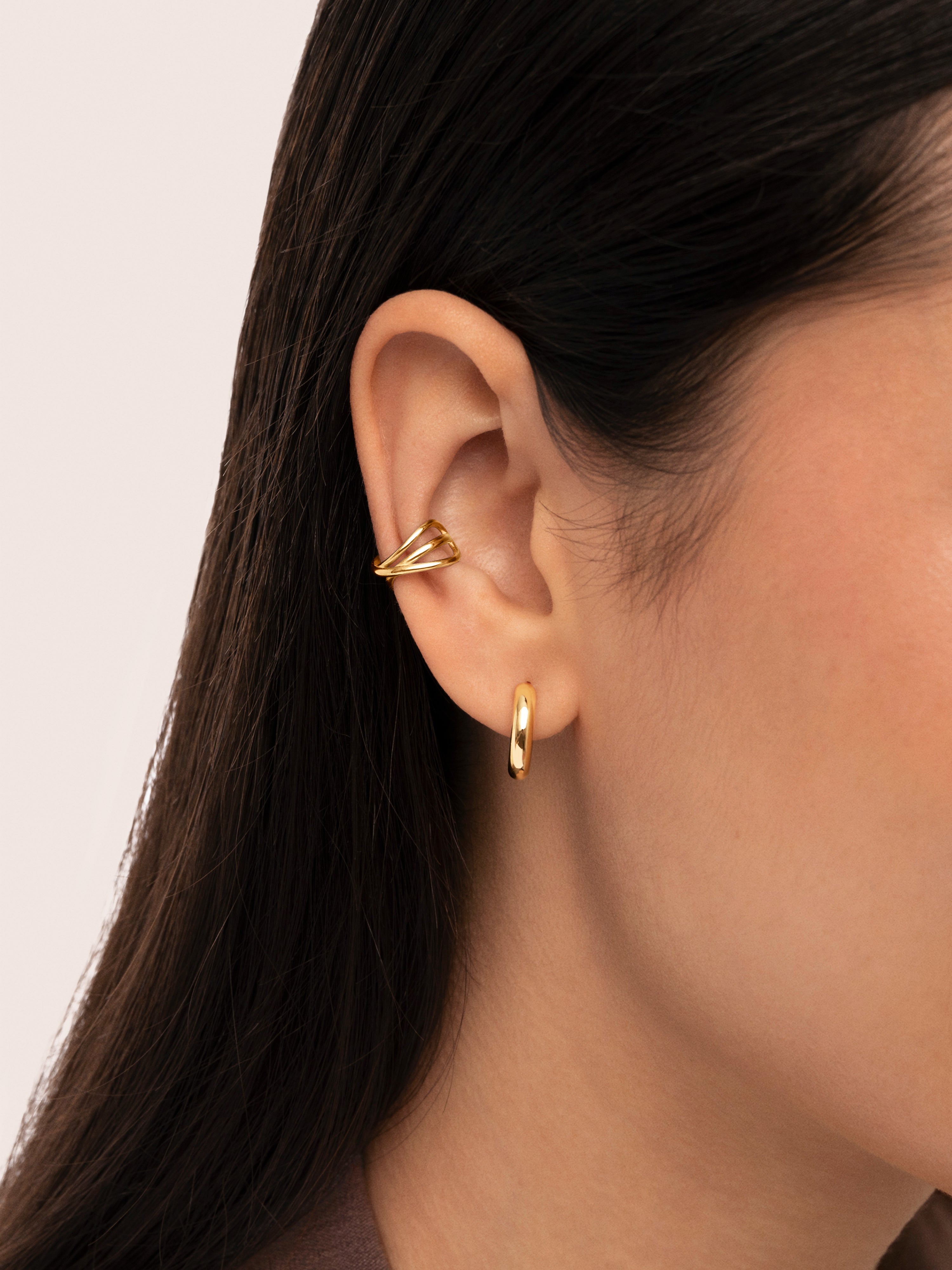 Nuestro Pendiente Suelto Ear Cuff Triple Cross bañado en Oro de 18kt, es el piercing perfecto para añadir a tu ear-look sin necesidad de hacerte un agujero en la oreja. Un ear cuff ajustable en forma de triple cruz super fácil de poner y extra cómodo. ✨