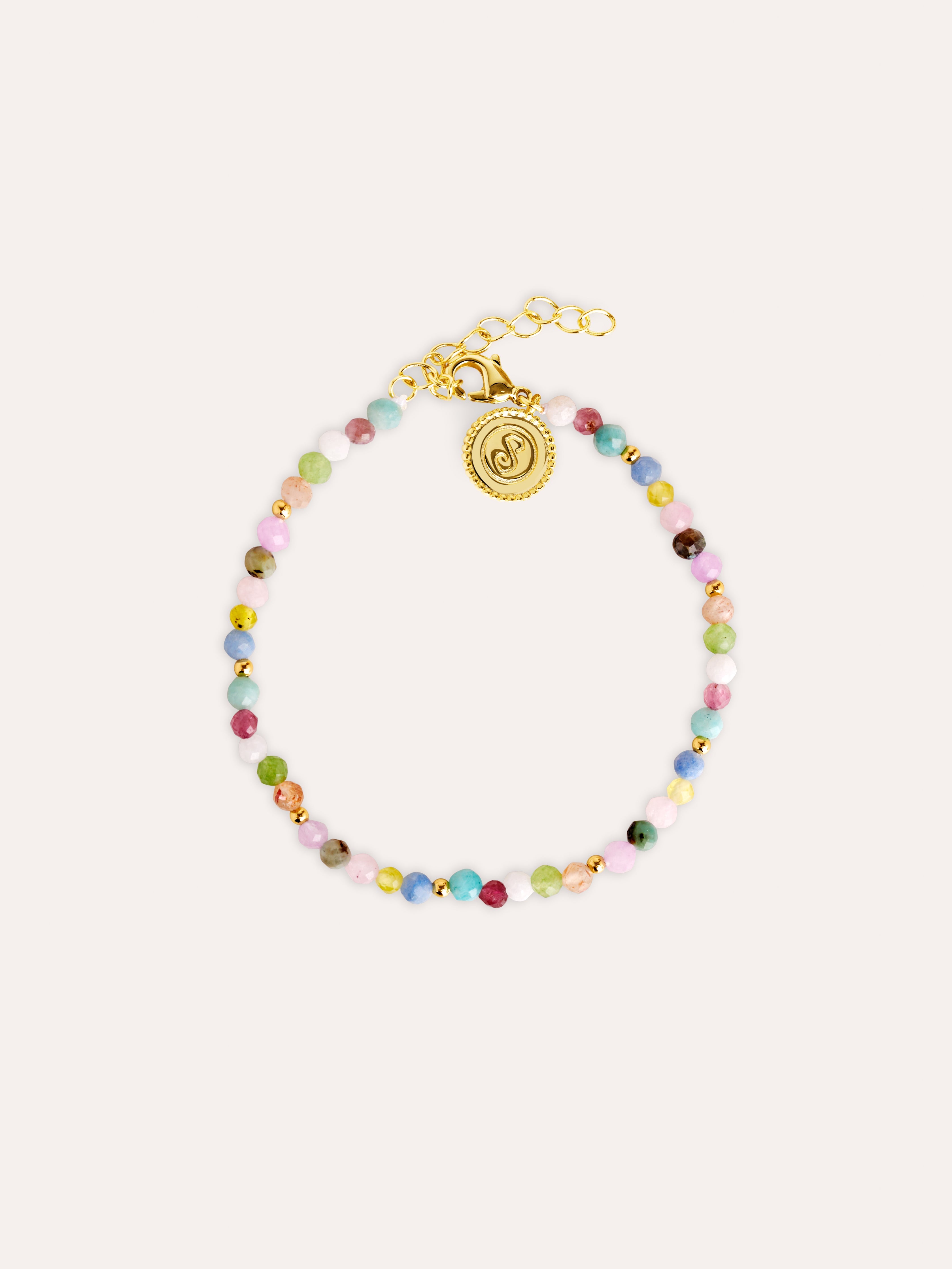 La Pulsera Altea Dots de Colors de acero bañada en Oro es de piedras naturales de colores, ideal para verano. 🌈